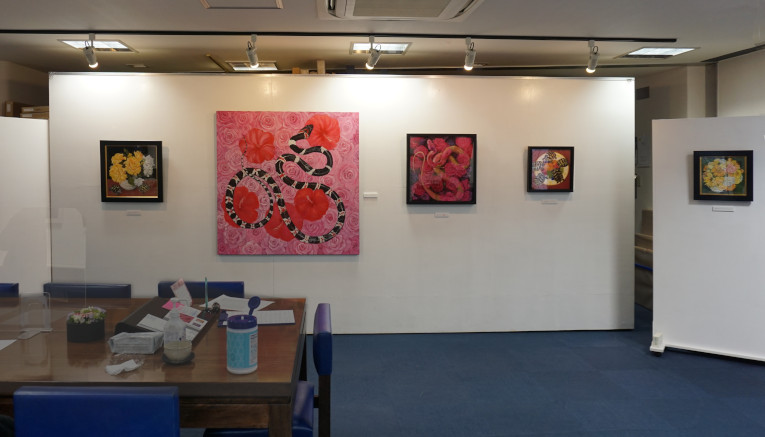 作家の愛する爬虫類と花々をお楽しみ下さい。